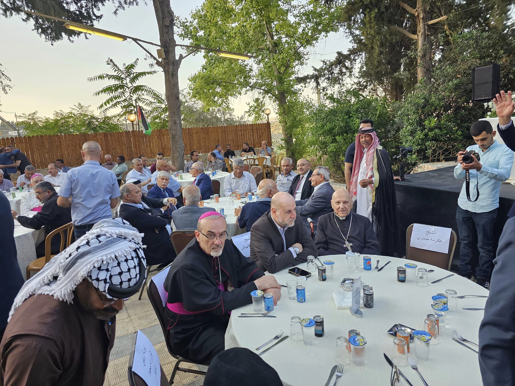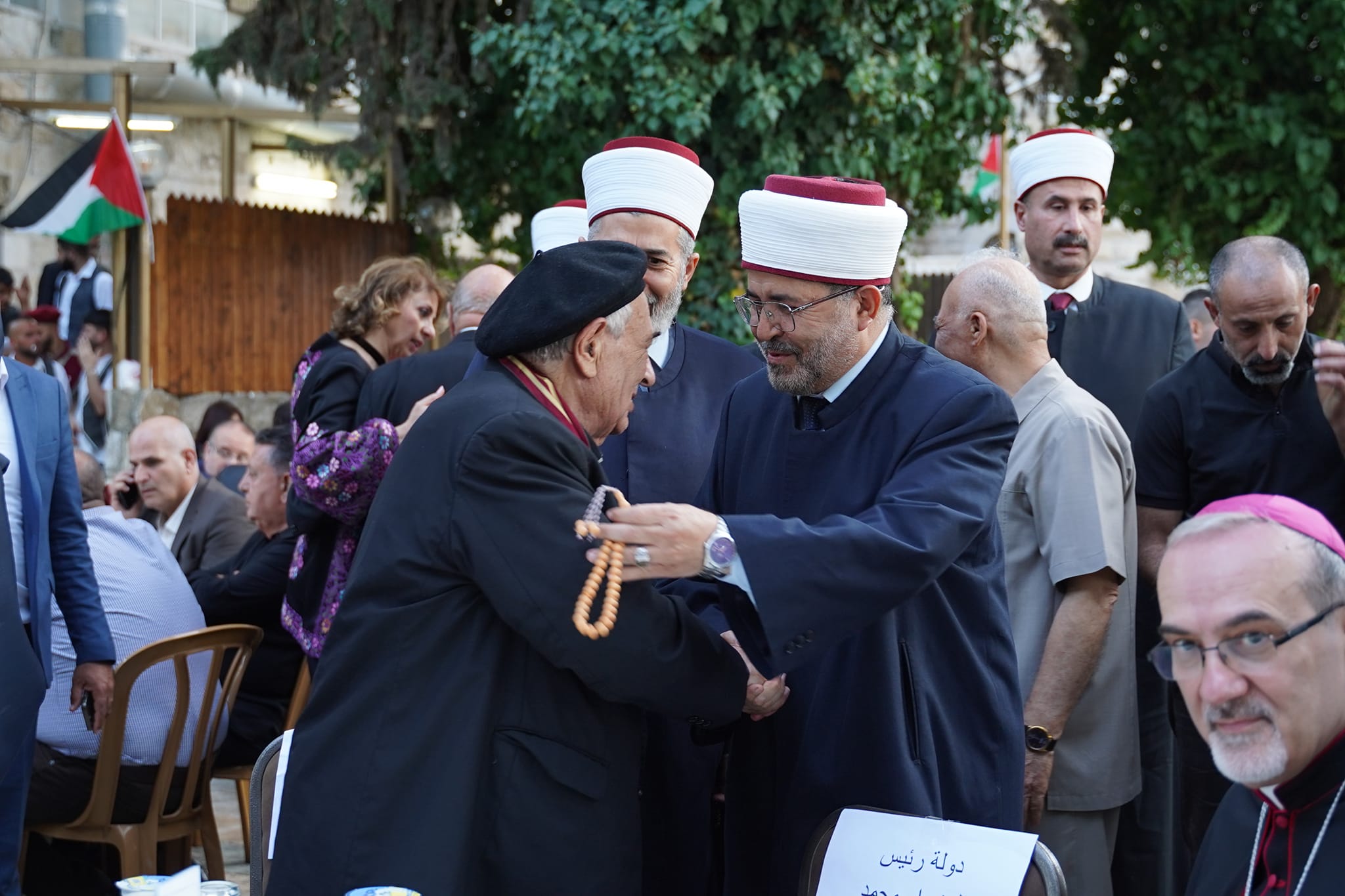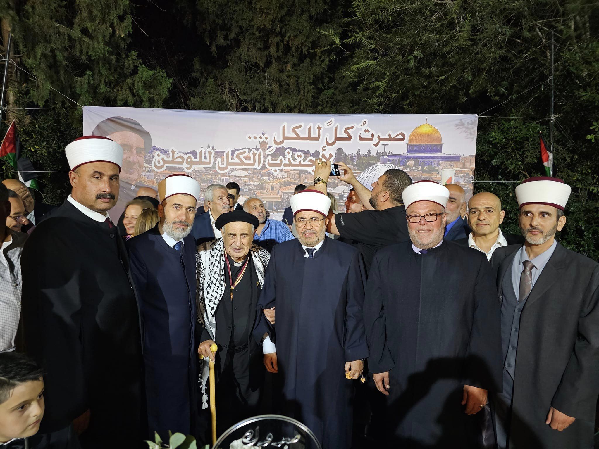 مشاركة سماحة الشيخ الدكتور محمود الهباش قاضي قضاة فلسطين مستشار الرئيس للشؤون الدينية والعلاقات الإسلامية يرافقه وفد من القضاة الشرعيين، في الاحتفالية الخاصة التي أقامها المنسينيور الأب منويل مسلم بمناسبة مرور 60 عاماً على رسامته الكهنوتية والتي أقيمت في ساحة كنيسة دير اللاتين في بلدة بير زيت .
