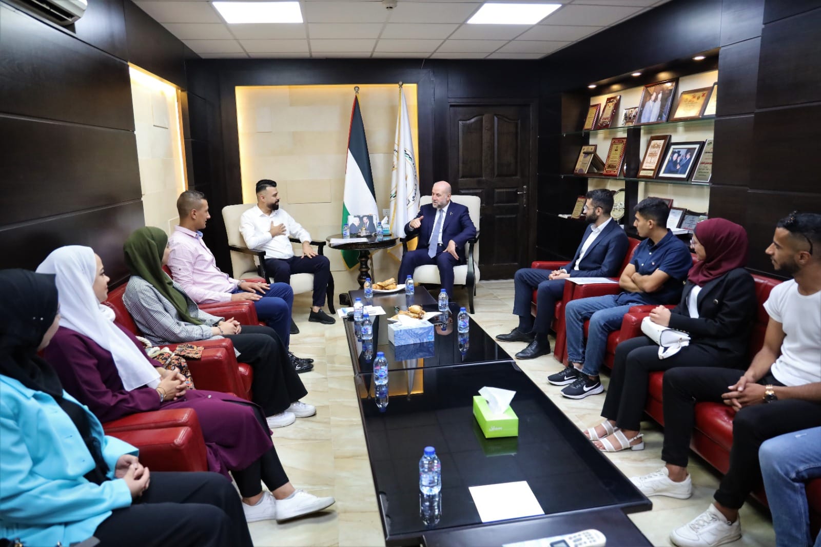 سماحة الشيخ الدكتور محمود الهباش قاضي قضاة فلسطين ومستشار فخامة السيد الرئيس للشؤون الدينية والعلاقات الإسلامية، يستقبل في مكتبه اليوم الأربعاء الموافق 2023/8/16 م، وفد جمعية بيتنا الشبابية، ضم مجموعة شبابية من مختلف مدن الضفة الغربية وقطاع غزة والقدس العاصمة.