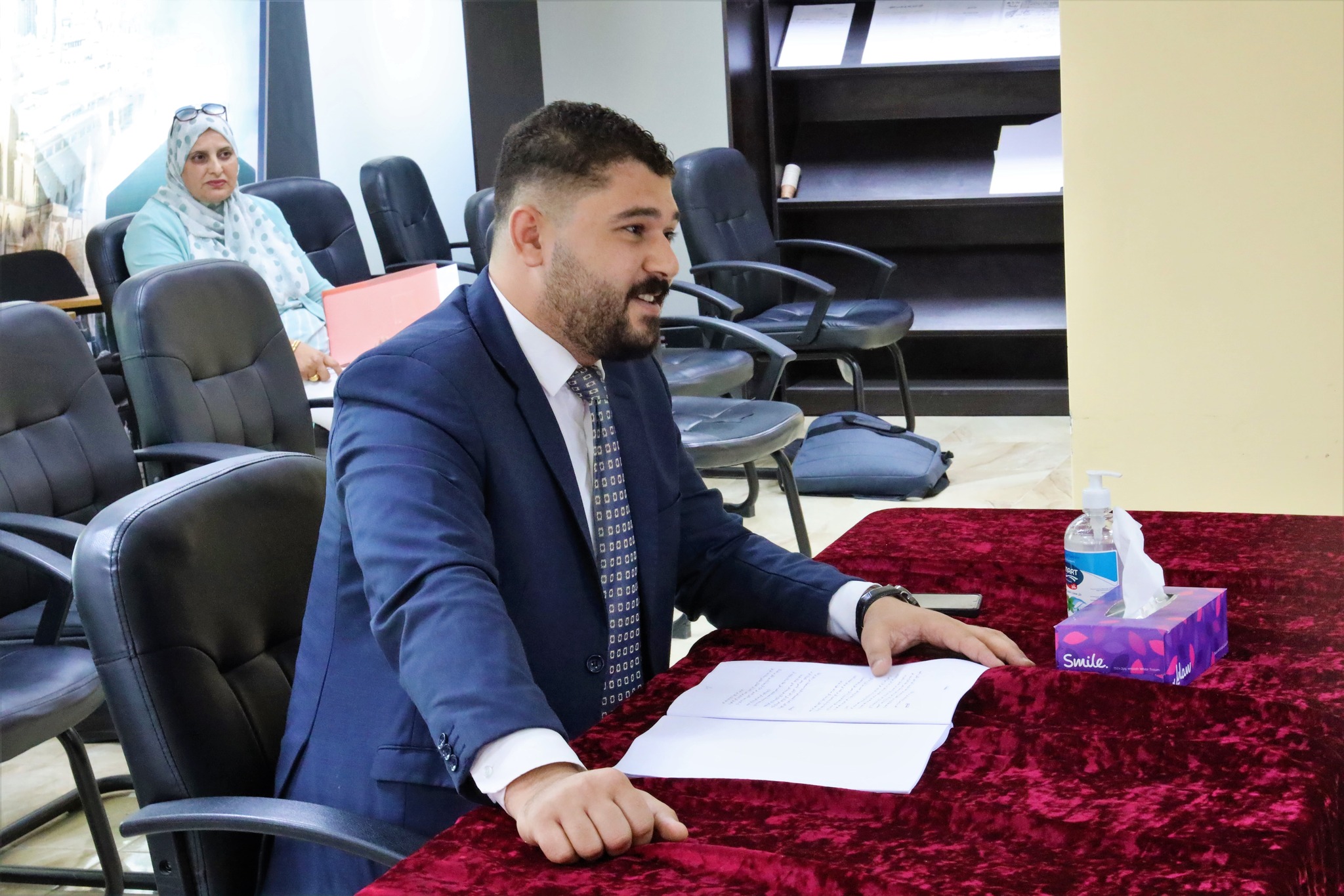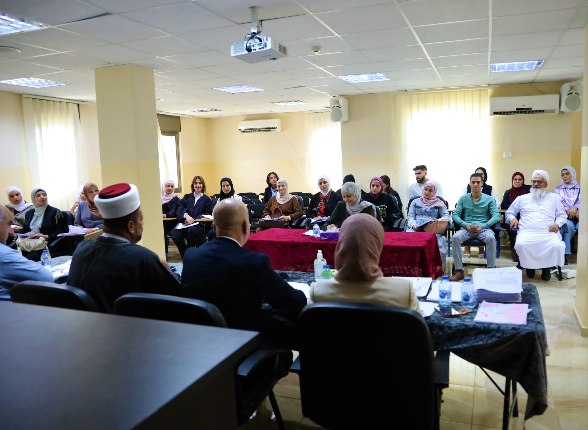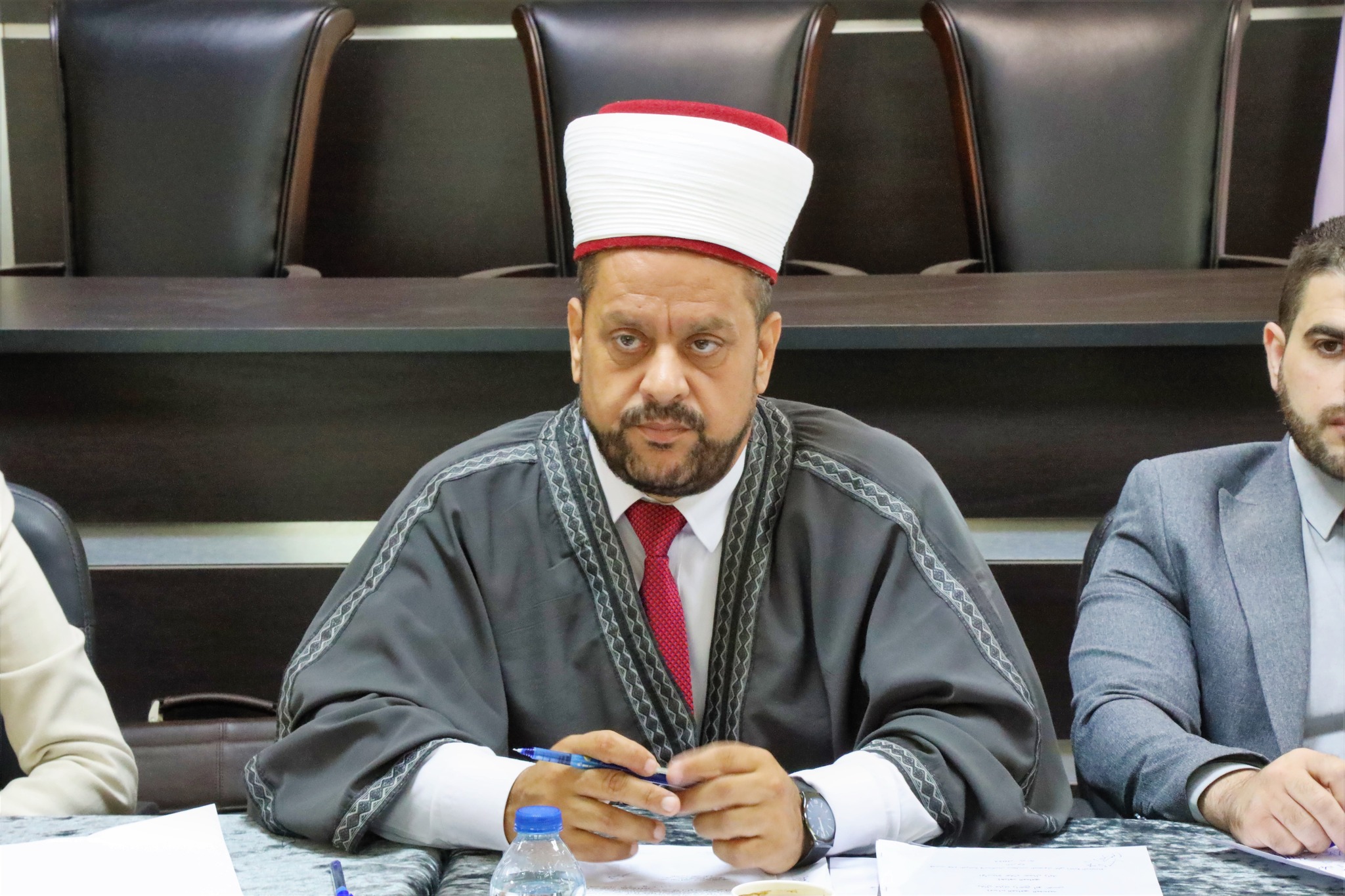 لجنة فحص المحامين الشرعيين في ديوان قاضي القضاة خلال مناقشة أبحاث مجموعة من المحامين الشرعيين الذين أنهوا فترة التدريب المنصوص عليها في قانون المحاماة الشرعية، تمهيدًا لمنحهم إجازة محاماة شرعية حسب الأصول، اليوم الأربعاء الموافق 23 / 8 / 2023.