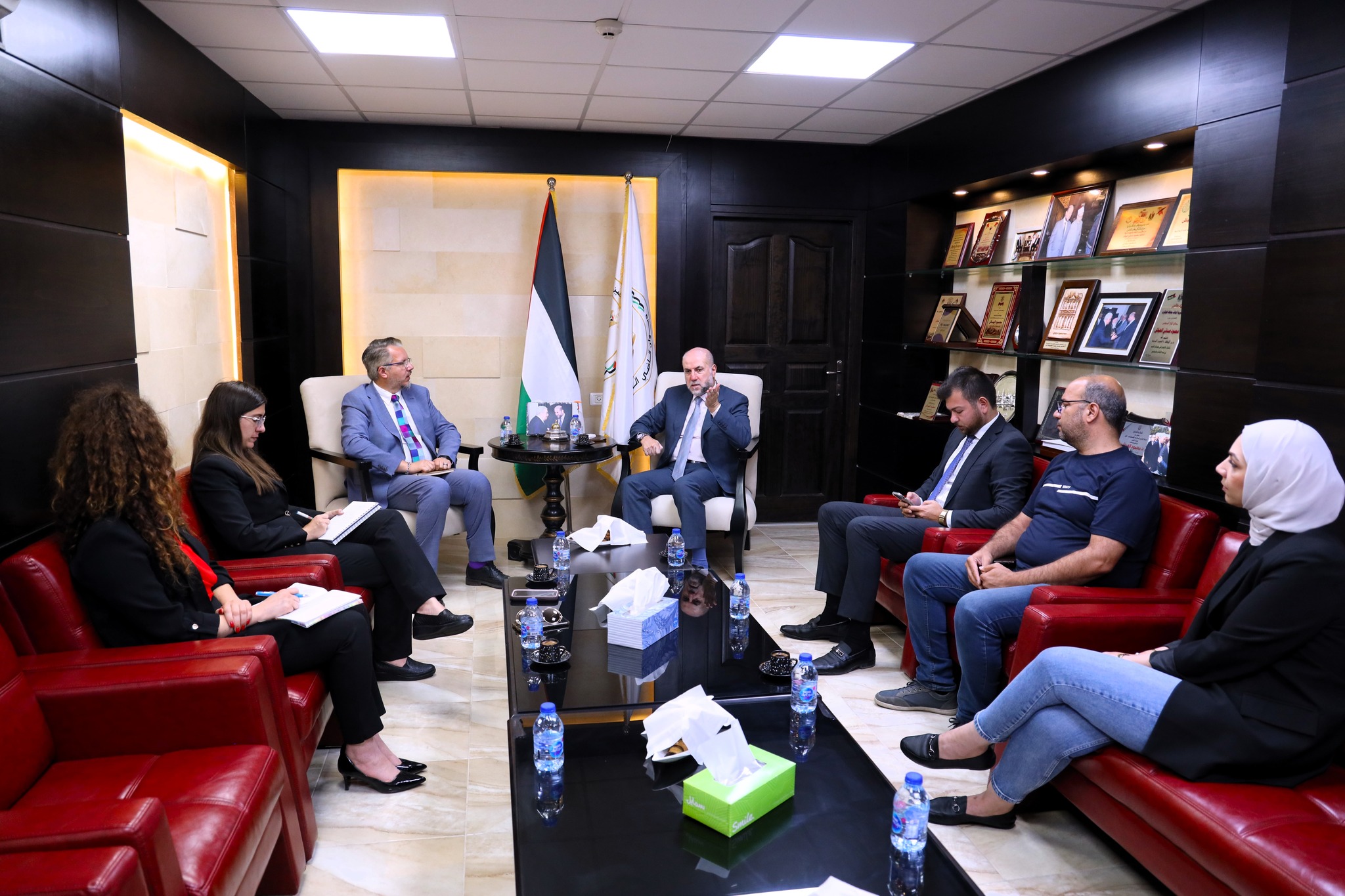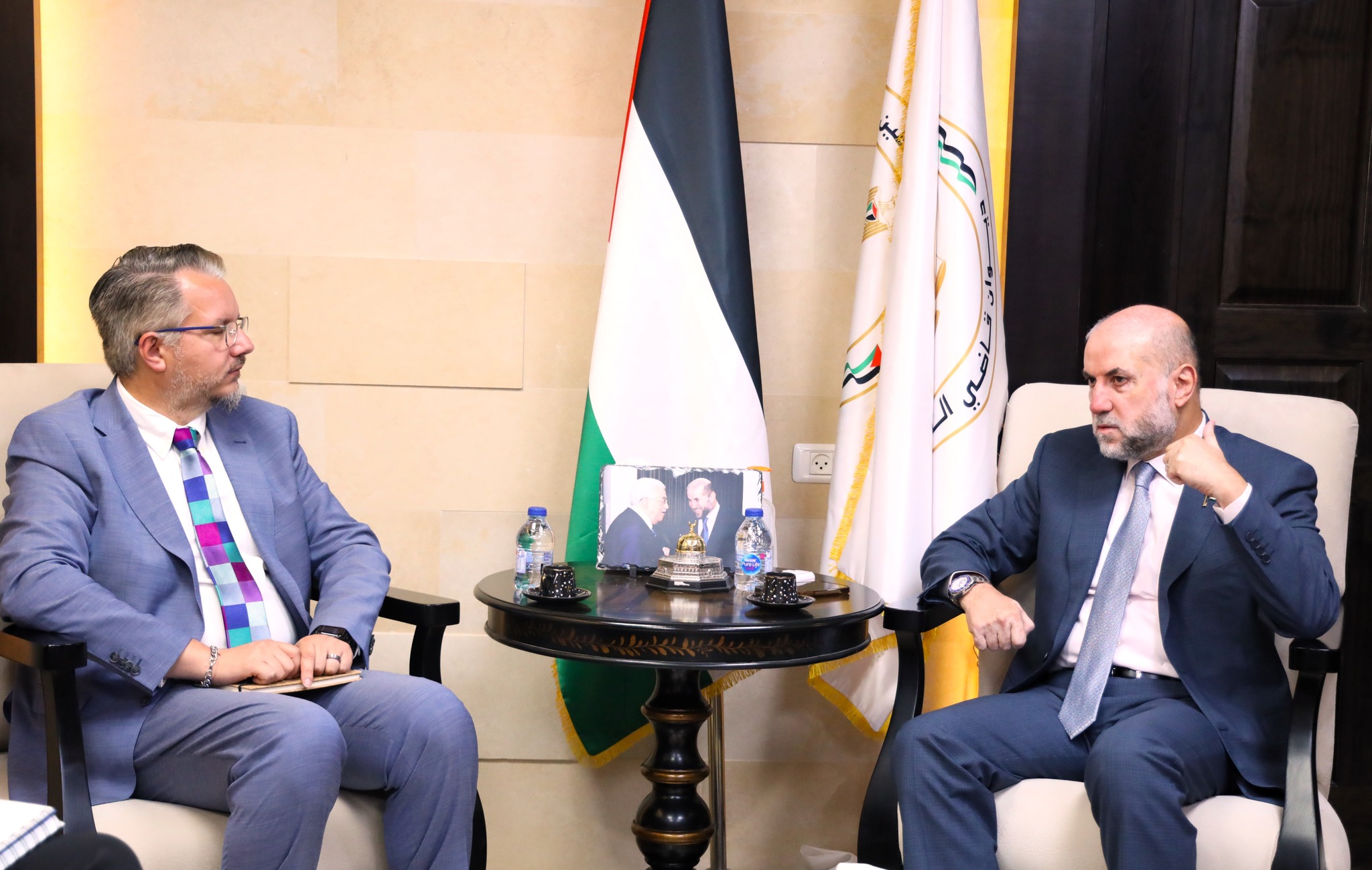 كرّم سماحة الشيخ الدكتور محمود الهباش قاضي قضاة فلسطين مستشار السيد الرئيس للشؤون الدينية والعلاقات الإسلامية، مدير برنامج "سواسية 2" المشترك كريس ديكر وذلك بمناسبه انتهاء مهام عمله في البرنامج، اليوم الثلاثاء 5 / 9 / 2023م. وأثنى قاضي القضاة خلال استقباله السيد ديكر في مقر ديوان قاضي القضاة، على الدور الهام الذي قام به السيد كريس ديكر، ومساهمة البرنامج تحت إدارته في تعزيز التعاون بين المانحين ومؤسسات قطاع العدالة في دولة فلسطين.