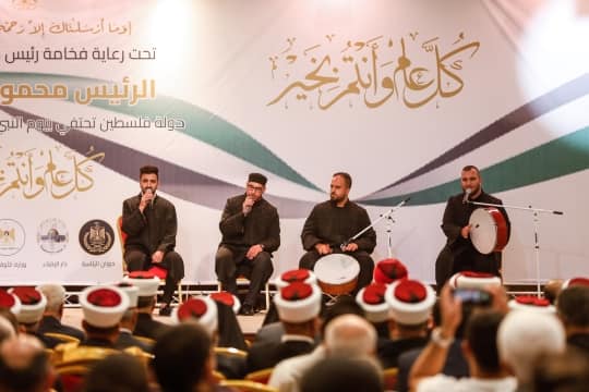 شارك رئيس دولة فلسطين محمود عباس، مساء اليوم الأربعاء، في الاحتفال بإحياء ذكرى المولد النبوي الشريف، الذي أقيم في مقر الرئاسة بمدينة رام الله.