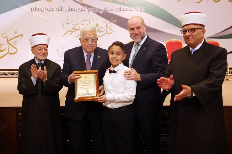 وكرم سيادته، ثلاثة أطفال من حفظة القرآن الكريم، تقديرا لهم لحفظ كتاب الله عز وجل، هم: آدم مأمون يوسف رجب (8 سنوات) من محافظة جنين، وليث علاء ياسين سعيد 9 سنوات من محافظة رام الله والبيرة، ومحمد نضال محمود منصور (10 سنوات) من محافظة نابلس.
