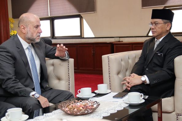 كوالالمبور / ماليزيا بحث الشيخ الدكتور محمود الهباش قاضي قضاة فلسطين مستشار الرئيس للشؤون الدينية والعلاقات الإسلامية مع وزير الشؤون الدينية الماليزي محمد نعيم مختار سبل دعم مدينة القدس في