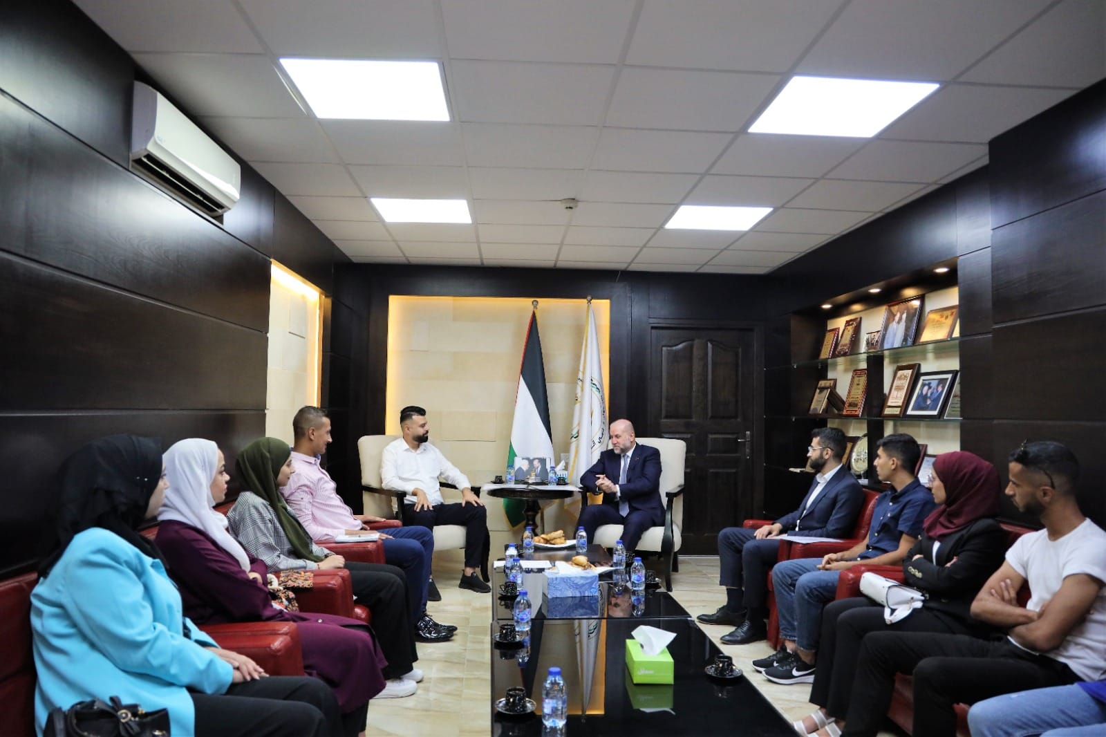 استقبال رئيس وأعضاء بلدية جنين وجمعية فلسطين للأيتام والمحتاجين